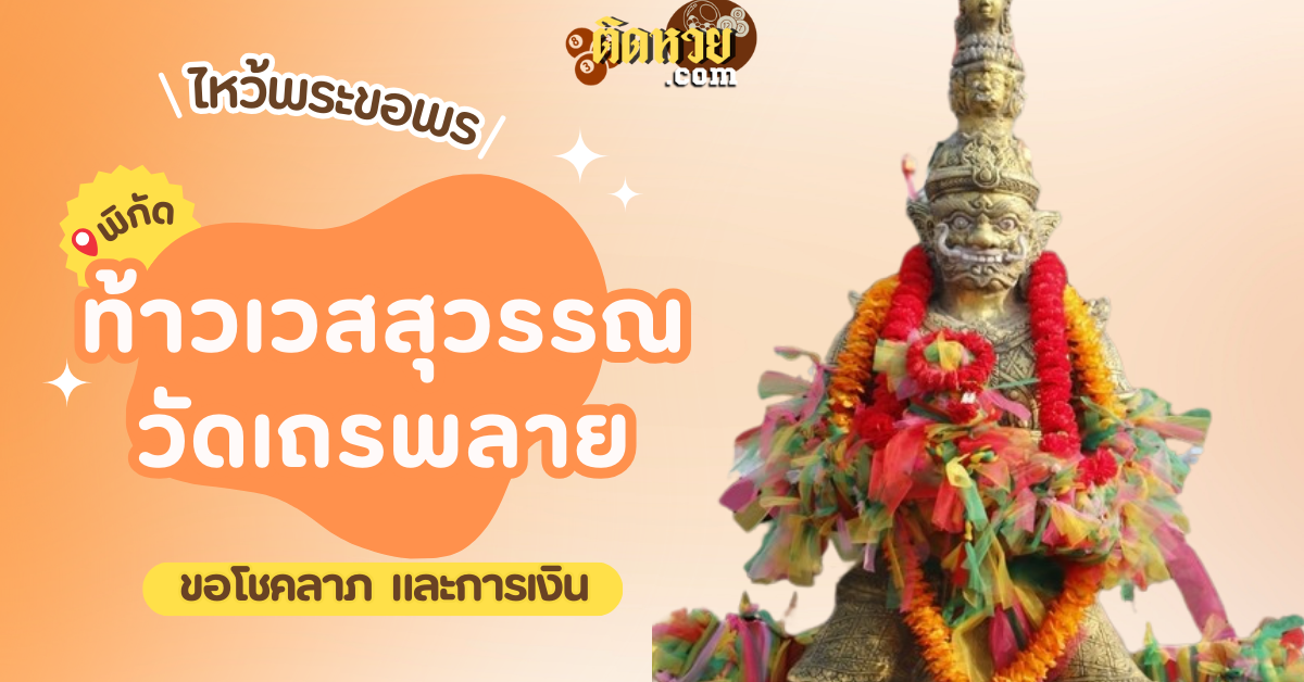 วัดเถรพลาย ตั้งอยู่ที่อำเภอศรีประจันต์ จังหวัดสุพรรณบุรี เป็นวัดที่มีชื่อเสียงในการบูชา “ท้าวเวสสุวรรณ” ซึ่งเป็นเทพแห่งความมั่งคั่งและผู้ปกป้องจากสิ่งชั่วร้าย ผู้คนจึงนิยมมาไหว้เพื่อขอพรในเรื่องการเงิน โชคลาภ และการป้องกันภัย