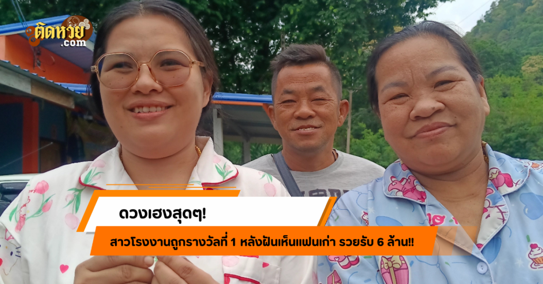 ดวงเฮงเกินเบอร์! สาวโรงงานลูก 3 ฝันเห็นเลขเด็ดจากแฟนเก่า ถูกหวยรางวัลที่ 1 รวยรับ 6 ล้าน!! ความฝันที่กลายเป็นจริง! สาวโรงงานดวงเฮงถูกลอตเตอรี่รางวัลที่ 1 หลังฝันเห็นเลขเด็ดจากอดีตคนรัก ณ บ้านหลังเล็กในอำเภอตากฟ้า จังหวัดนครสวรรค์ นางสาวณัชชา กรีอินทร์ทอง สาวโรงงานลูก 3...
