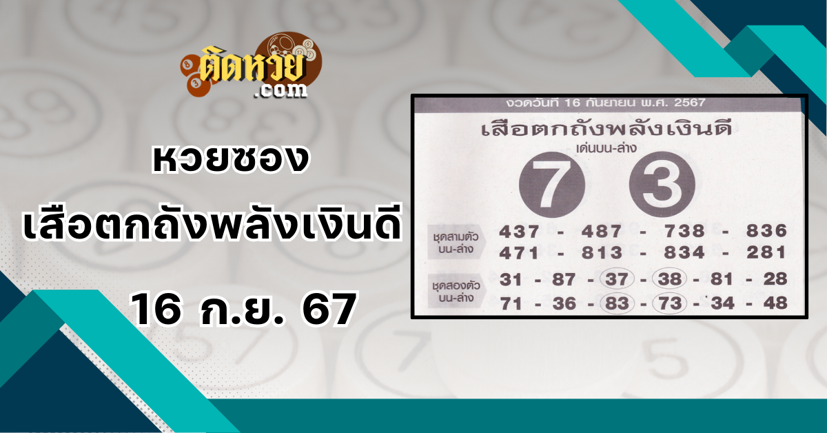 เลขเด็ดหวยซอง “เสือตกถังพลังเงินดี” งวดประจำวันที่ 16/9/67 เลขนำโชคแนวทางรวย งวดนี้ให้เน้น 7 และ 3