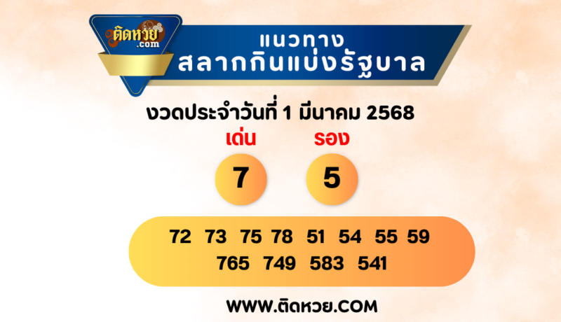 แนวทางหวยรัฐบาลไทย งวดวันที่ 1 มีนาคม 2568 ติดตามแนวทางหวยรัฐบาล ได้ทุกงวด เลขเด็ดรอคุณอยู่ที่ ติดหวย!