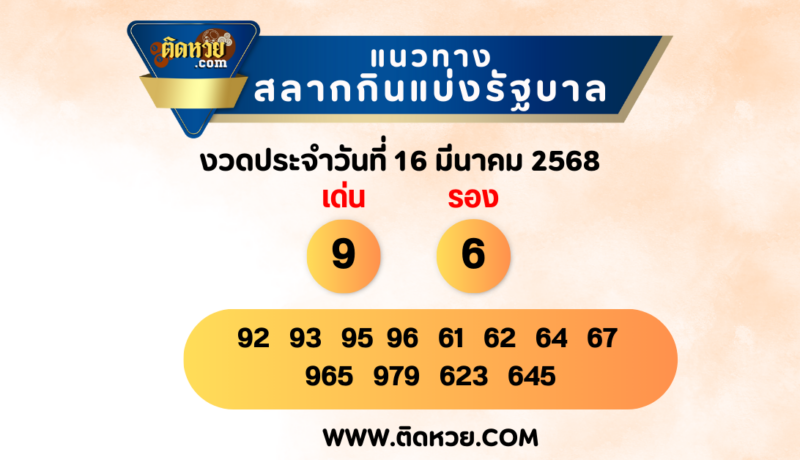 แนวทางหวยรัฐบาลไทย งวดวันที่ 16 มีนาคม 2568 ติดตามแนวทางหวยรัฐบาล ได้ทุกงวด เลขเด็ดรอคุณอยู่ที่ ติดหวย!
