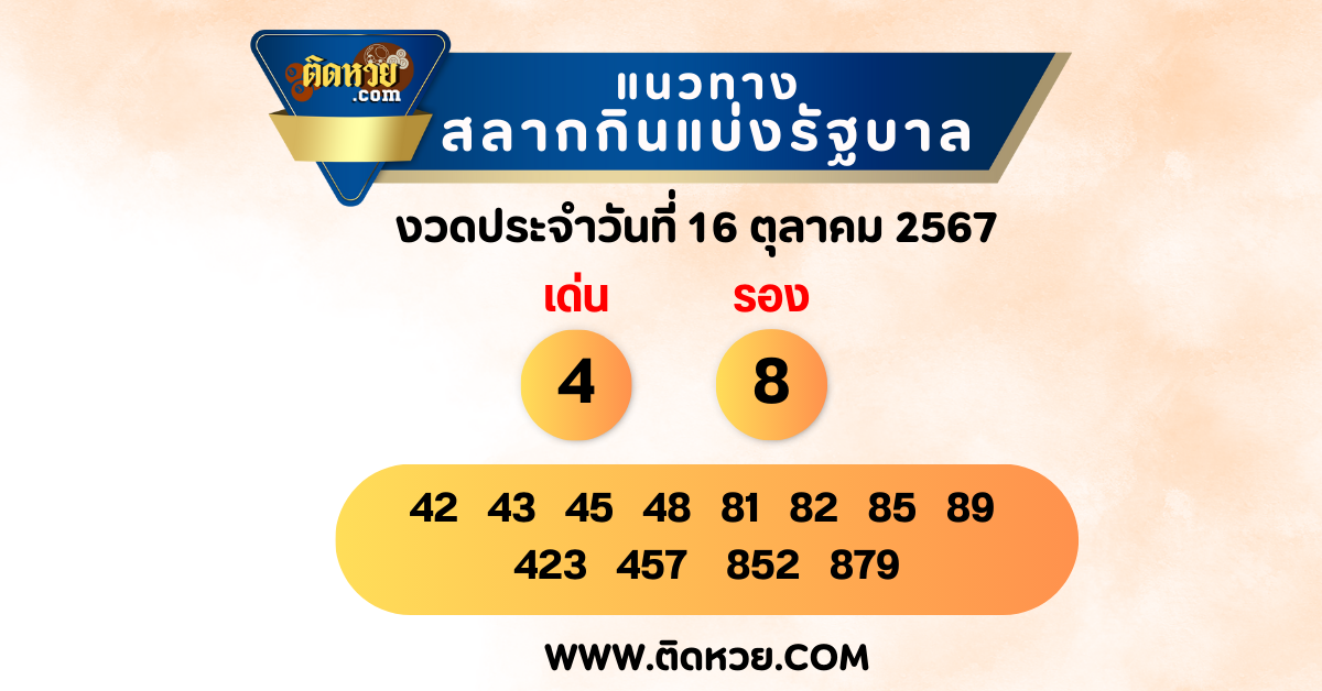 แนวทางหวยรัฐบาลไทย งวดวันที่ 16 ตุลาคม 2567 ติดตามแนวทางหวยรัฐบาล ได้ทุกงวด เลขเด็ดรอคุณอยู่ที่ ติดหวย!