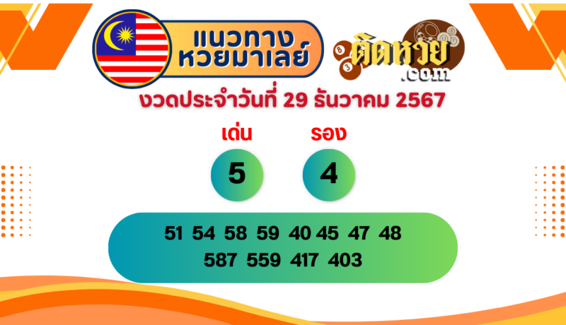 แนวทาง หวยมาเลย์ งวดวันที่ 29/12/67