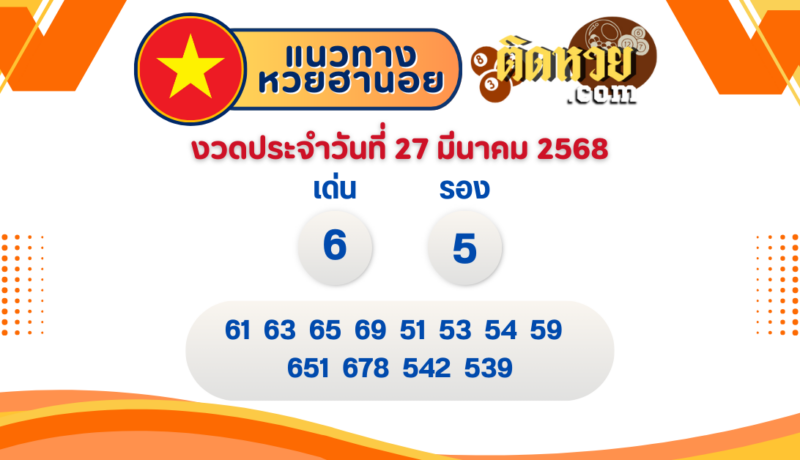 แนวทาง หวยฮานอย งวดประจำวันที่ 27/03/67