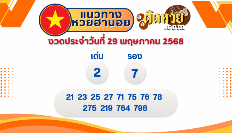 แนวทางหวยฮานอย งวดประจำวันที่ 29/05/68