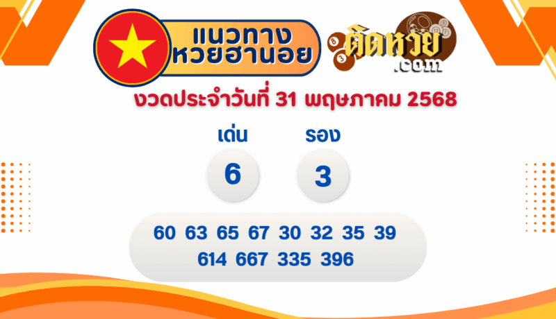 แนวทางหวยฮานอย งวดประจำวันที่ 31/05/68