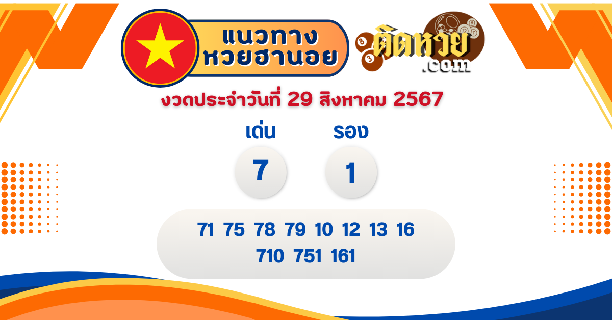 แนวทาง หวยฮานอย งวดประจำวันที่ 29/08/67