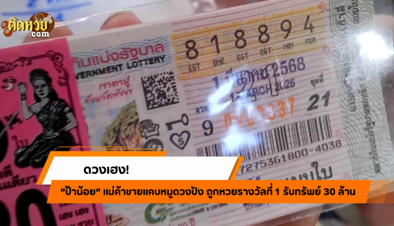 เมื่อวันที่ 1 มีนาคม 2568 เวลา 16.05 น. กำนันตำบลสุเทพ จังหวัดเชียงใหม่ แจ้งข่าวดีว่า ผลการออกรางวัลสลากกินแบ่งรัฐบาลประจำงวดวันที่ 1 มีนาคม 2568 รางวัลที่ 1 หมายเลข 818894 ได้นำพาโชคลาภมหาศาลมาสู่ “ป้าน้อย” แม่ค้าขายแคบหมูในตลาดนัดบ้านโป่งน้อย อำเภอเมืองเชียงใหม่ ผู้โชคดีถูกรางวัลที่ 1 งวดที่ 9 ชุด 21 รับเงินรางวัล 30 ล้านบาท
